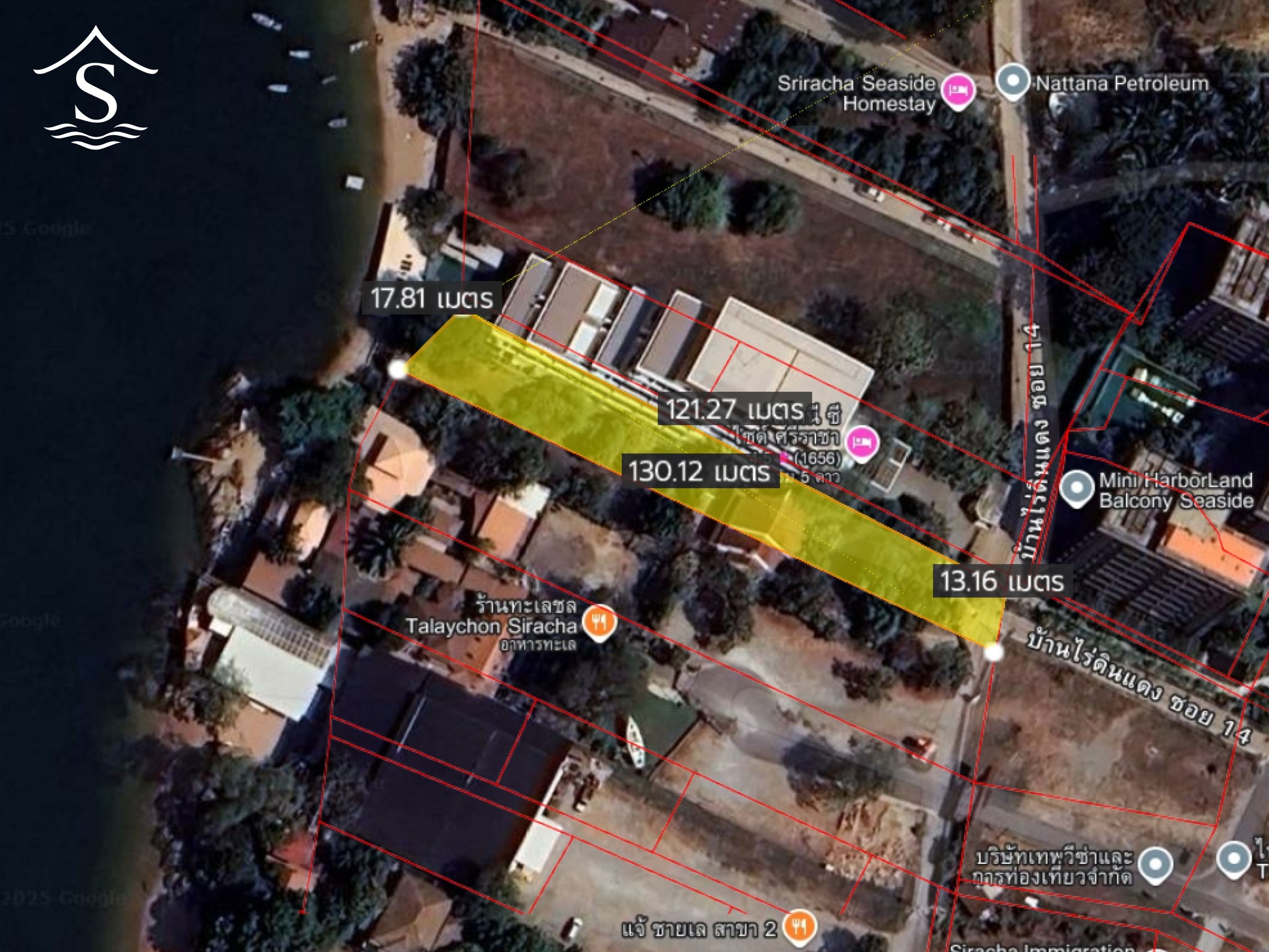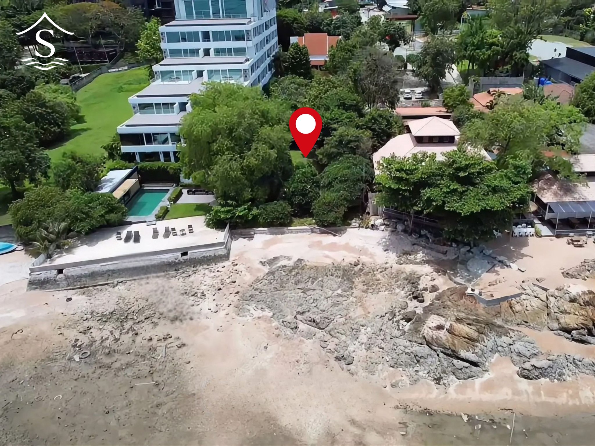 แปลงนี้เป็นที่ดินพร้อมสิ่งปลูกสร้าง หน้ากว้างติดทะเล 17 เมตร ลึกประมาณ 130 เมตร มีบ้านพักตากอากาศสมัยโบราณ โครงสร้างแข็งแรง มีห้องนอน 3 ห้อง ห้องน้ำ 3 ห้อง หน้าบ้านหันหน้าลงทะเล มีสนามหญ้า และต้นไม้รายล้อม ร่มรื่นมาก ๆ หากเล็มต้นไม้บางส่วนก็สามารถเห็นวิวทะเลแบบเต็มตา